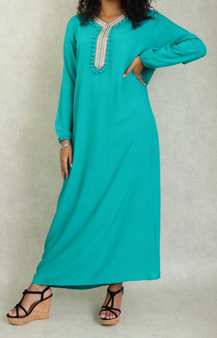 Robe orientale longue en coton avec belles broderies pour femme - Couleur Vert émeraude - REF. 33559 (25.00 €)