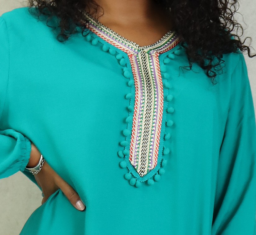 Gandoura marocaine Bleu vert avec strass argentée - REF. 20138 (25.00 €)