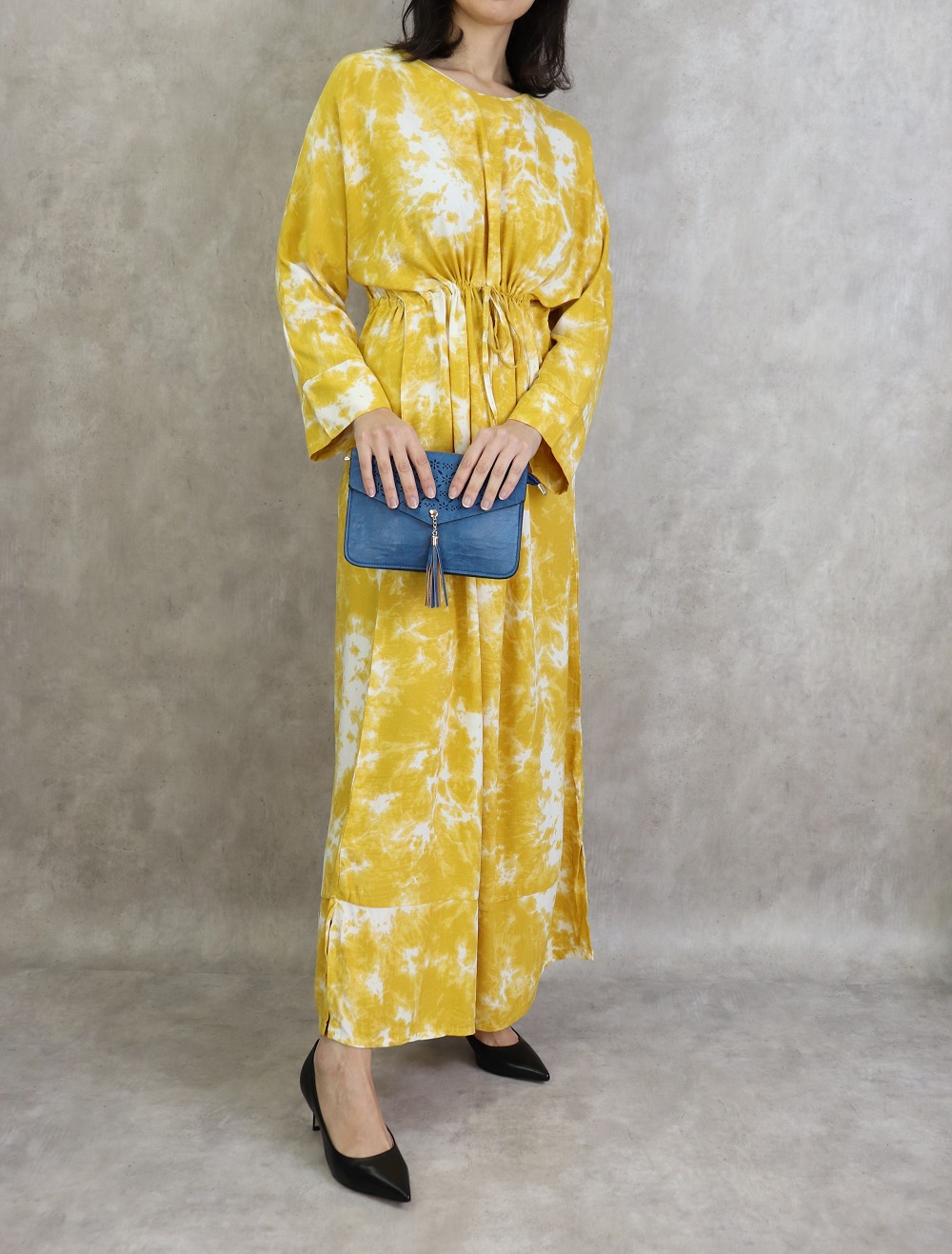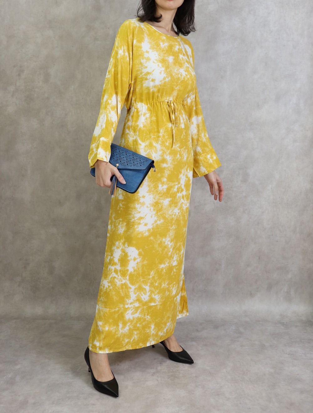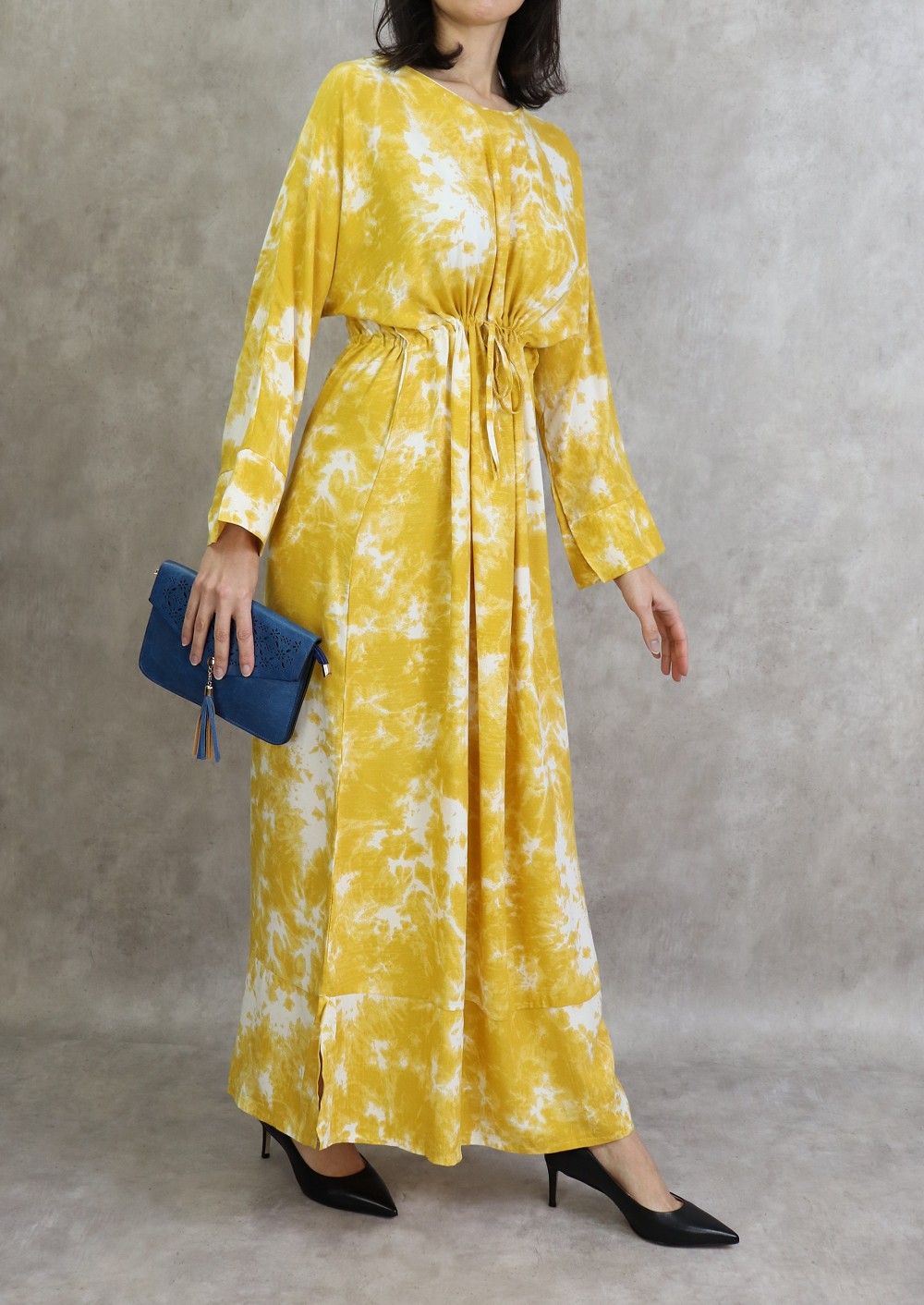 Robe longue en coton à imprimés délavés - Couleur jaune Vetement & Accessoire