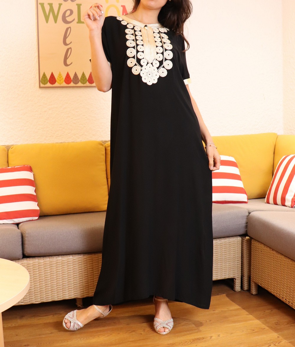 Robe orientale longue pour femme avec perles et broderies 100% coton (Plusieurs couleurs disponibles) - REF. 33442 (25.00 €)