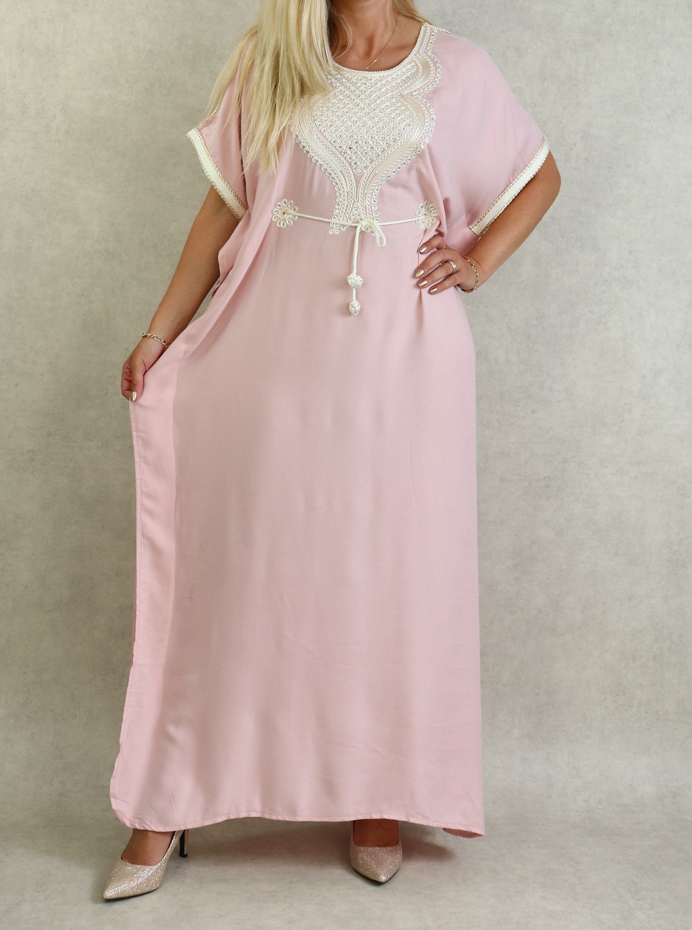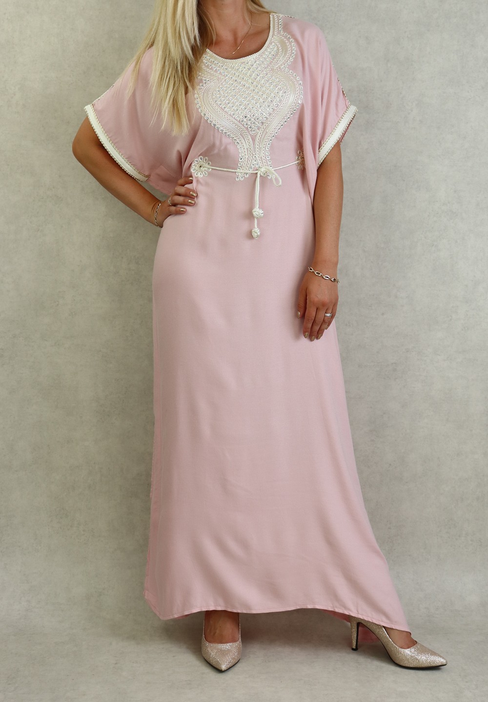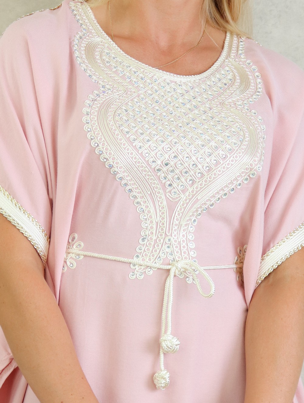 Robe de soirée tunisienne manches courtes brodée pour femme - Couleur rose clair Vetement & Accessoire