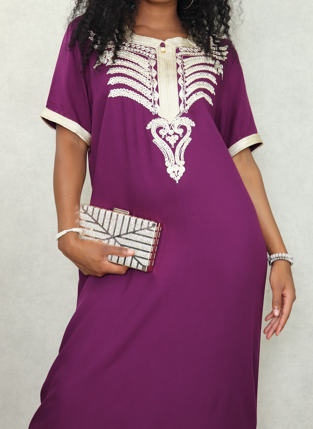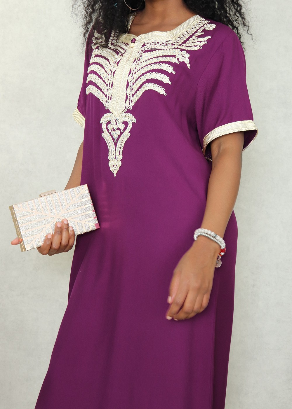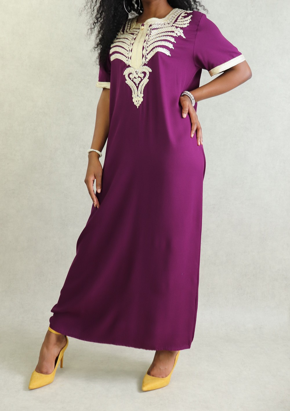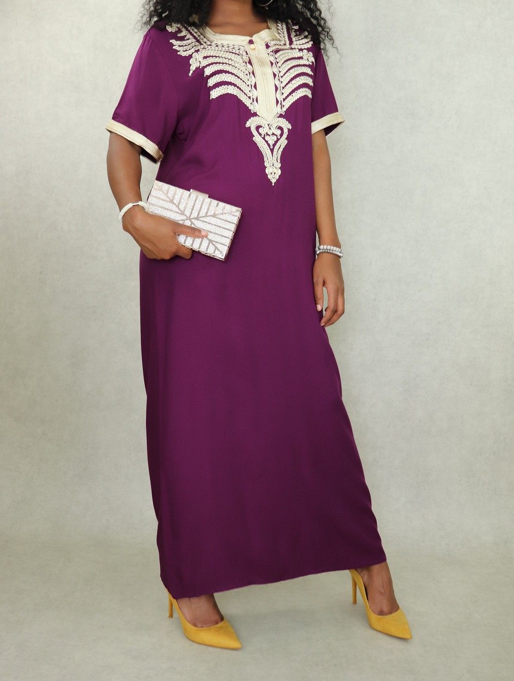Cette robe orientale à manches courtes, encolure en cœur, tissu doux type coton et léger vous donnera une allure incroyable.