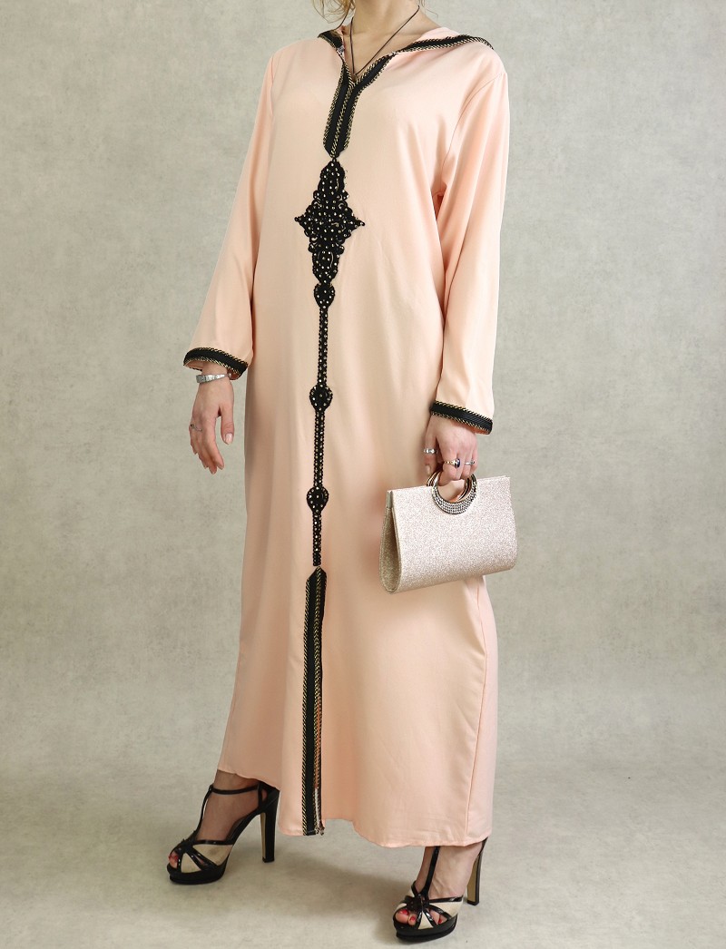 Djellaba marocaine à capuche brodée et décorée de strass - Couleur Saumon Vetement & Accessoire