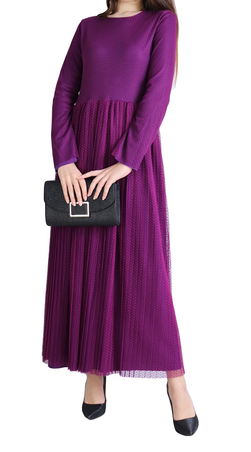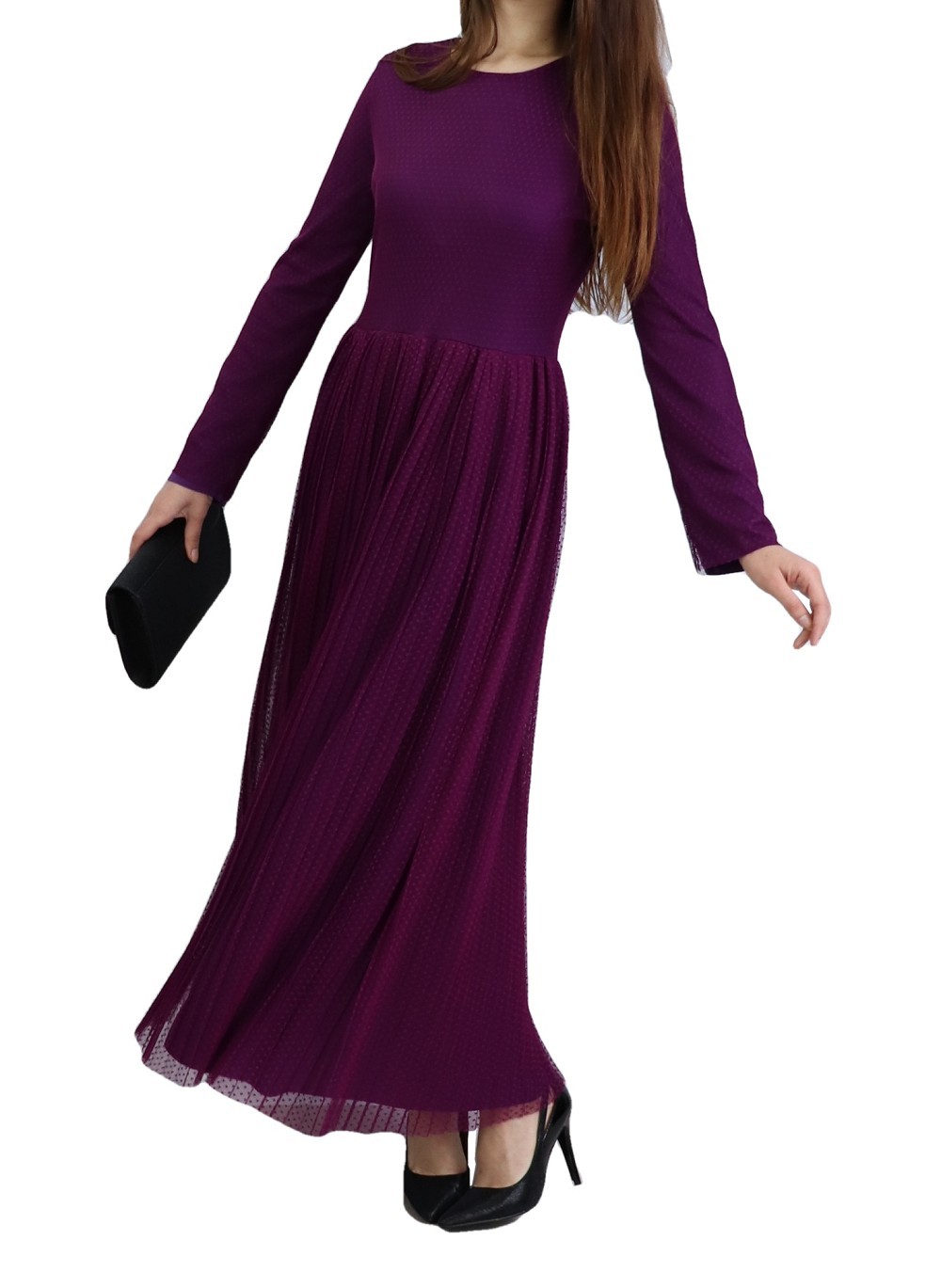 Robe de soirée longue plissée en tulle pour femme - Couleur Violet Vetement & Accessoire