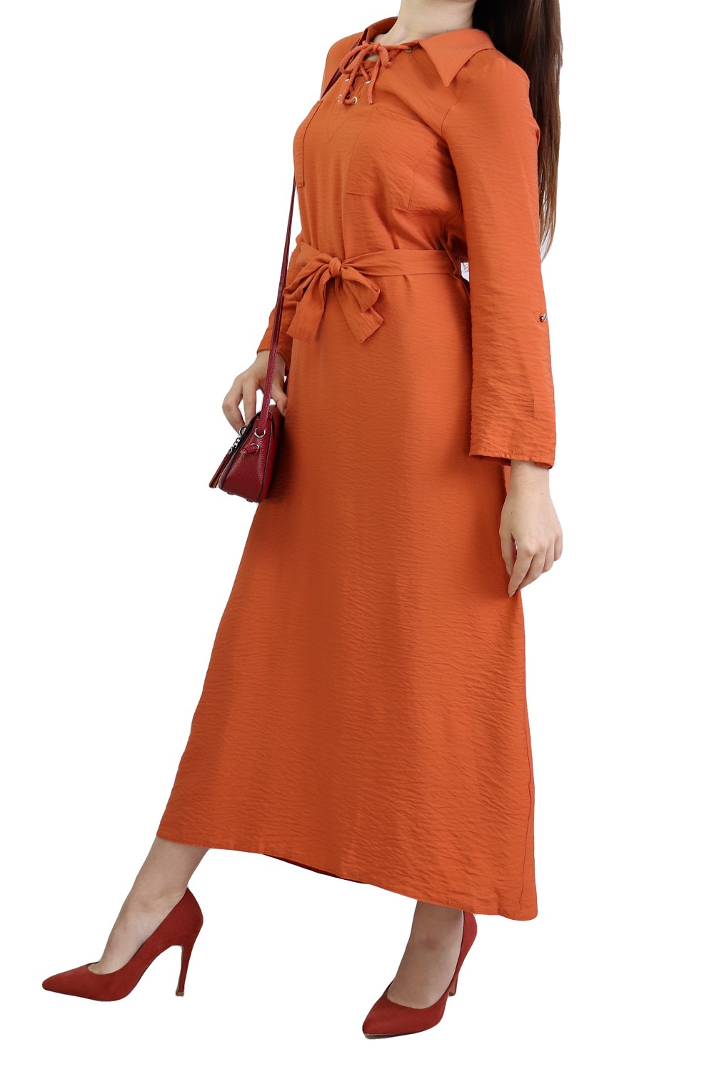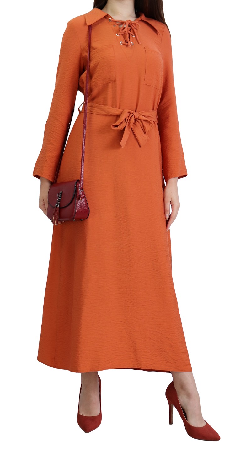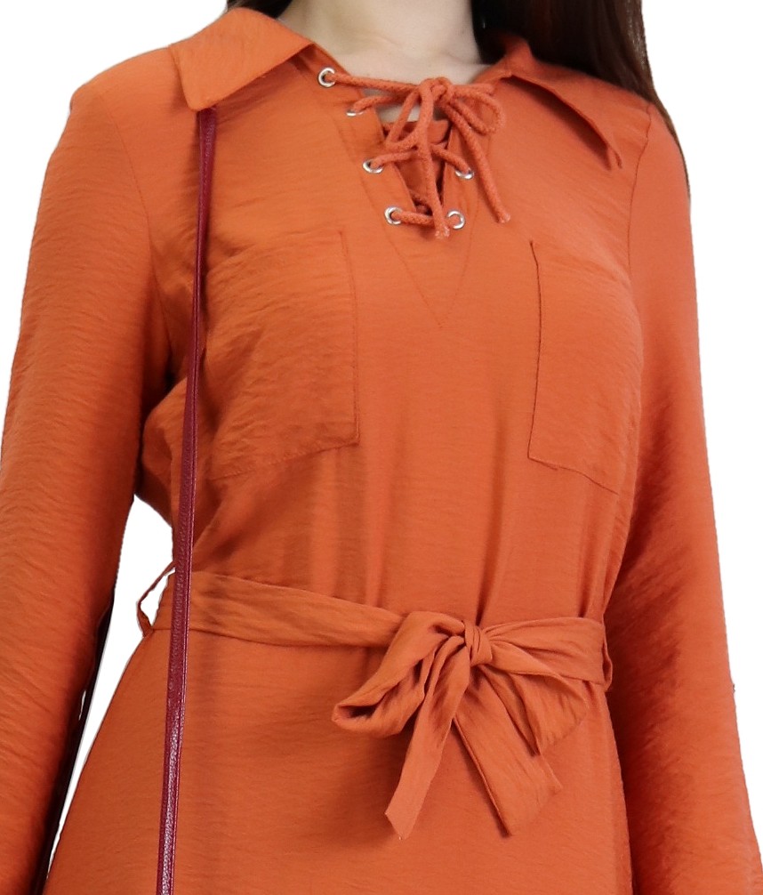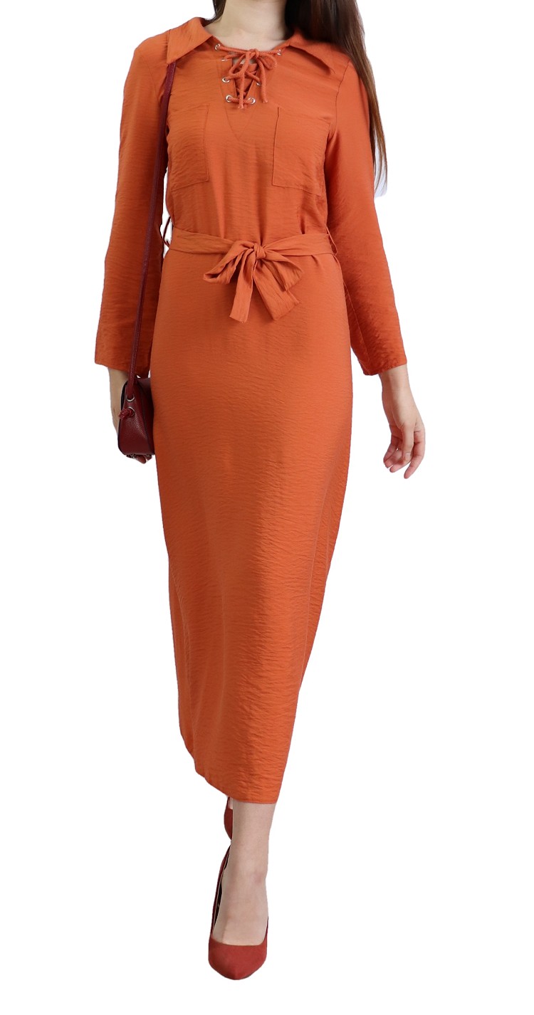 Robe fluide mi-saison pour femme avec manche ajustable - Couleur rouille Vetement & Accessoire