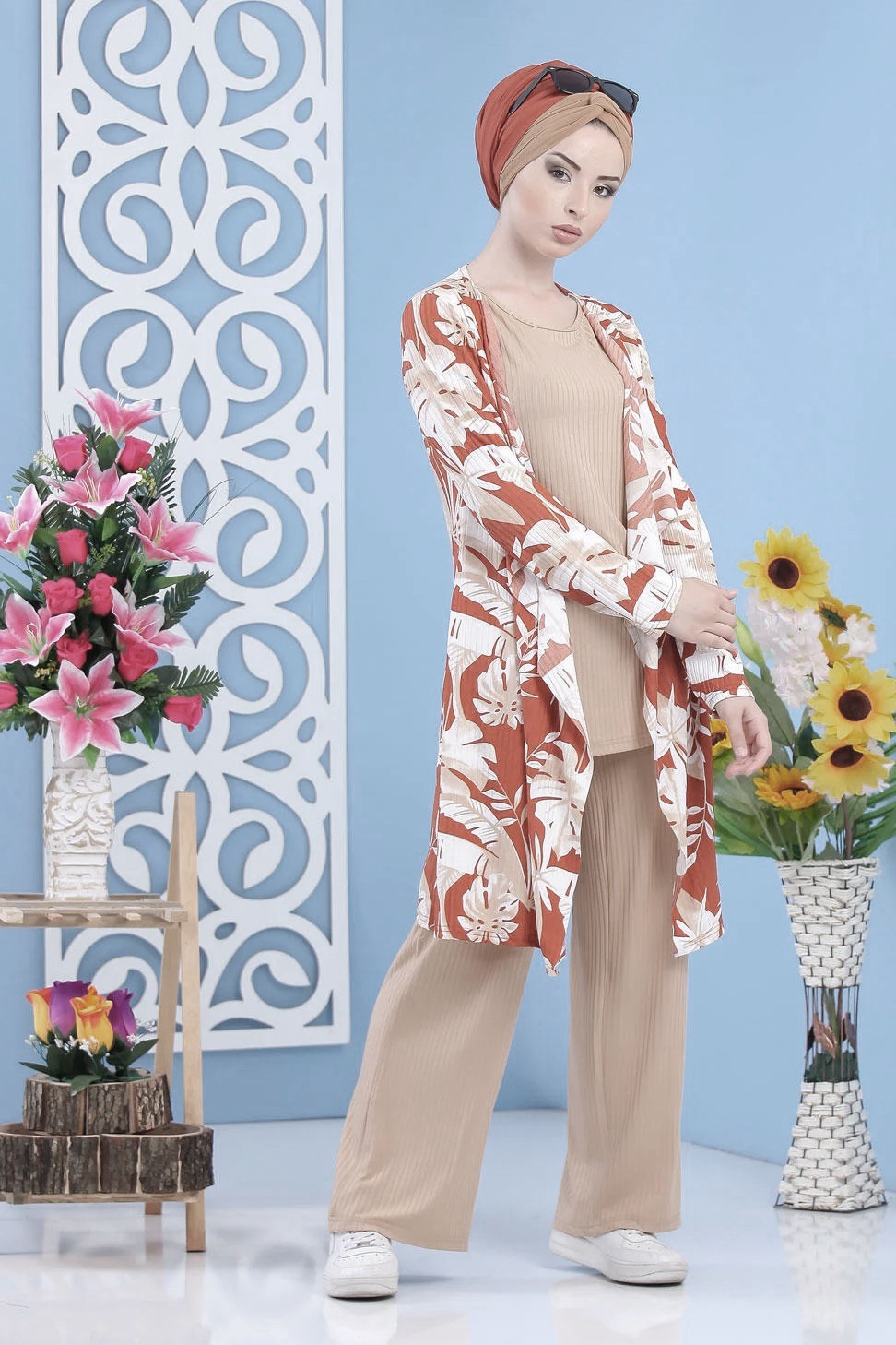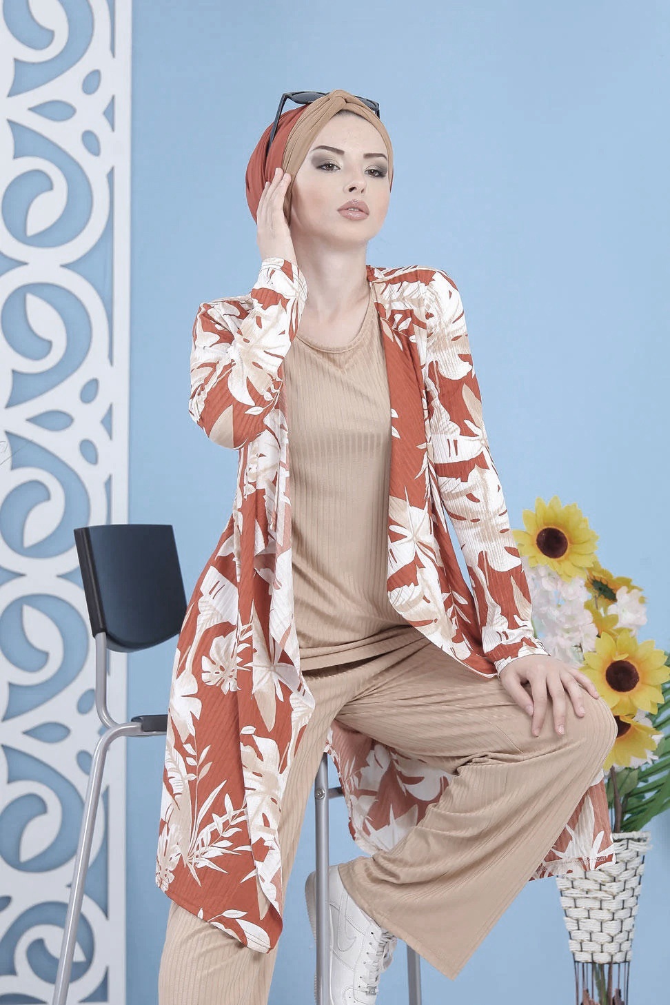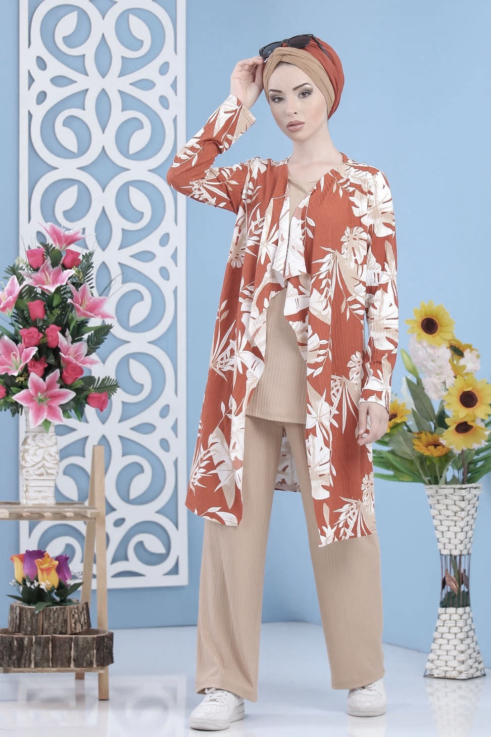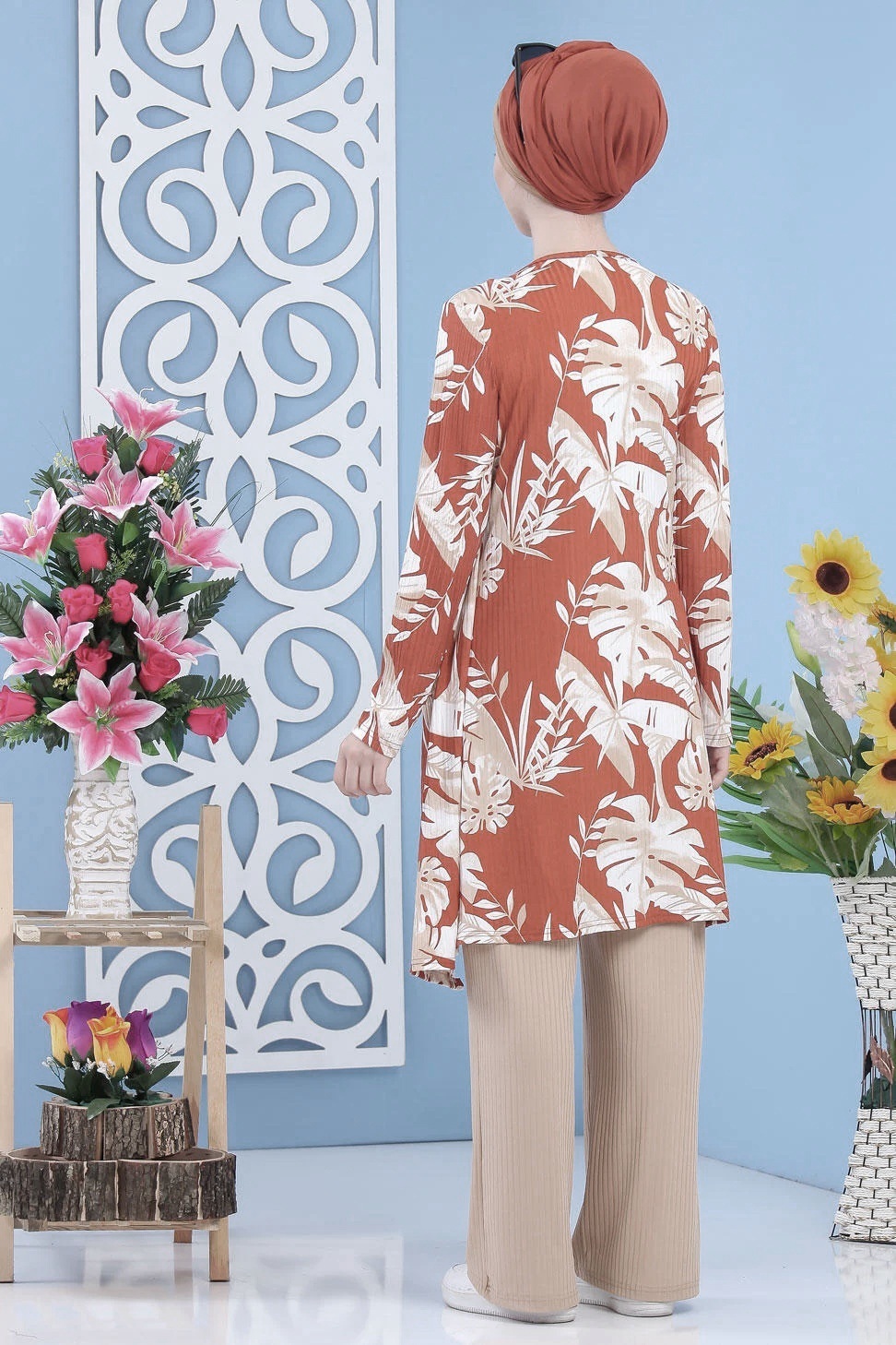 Ensemble 2 pièces : tunique effet cousu gilet coupe droite, manches longues ; pantalon ample, taille élastique.