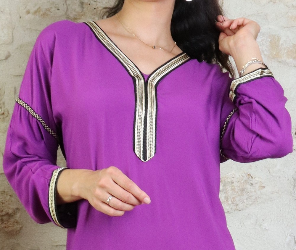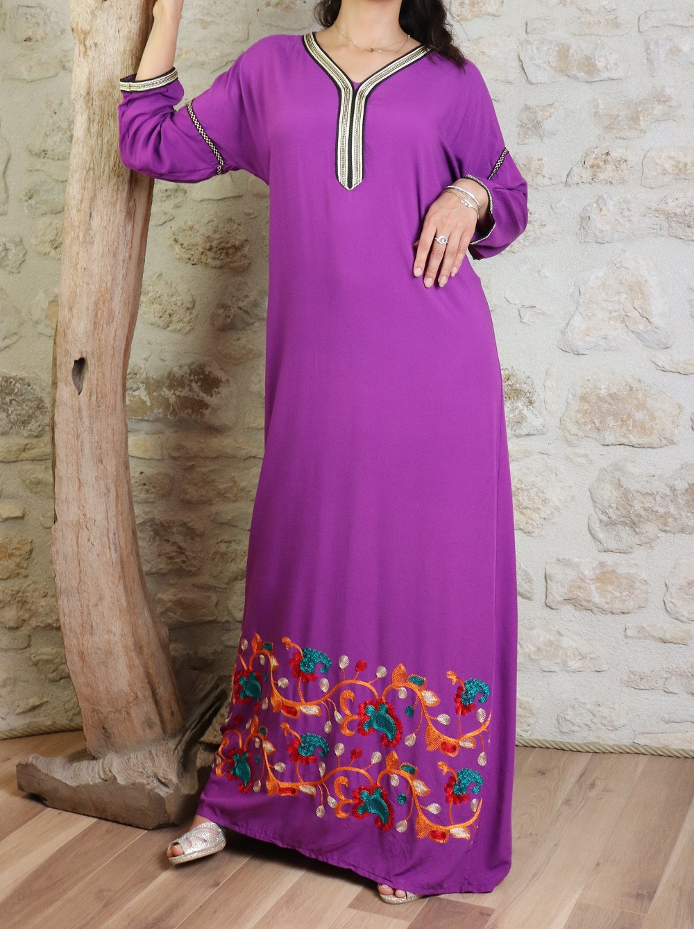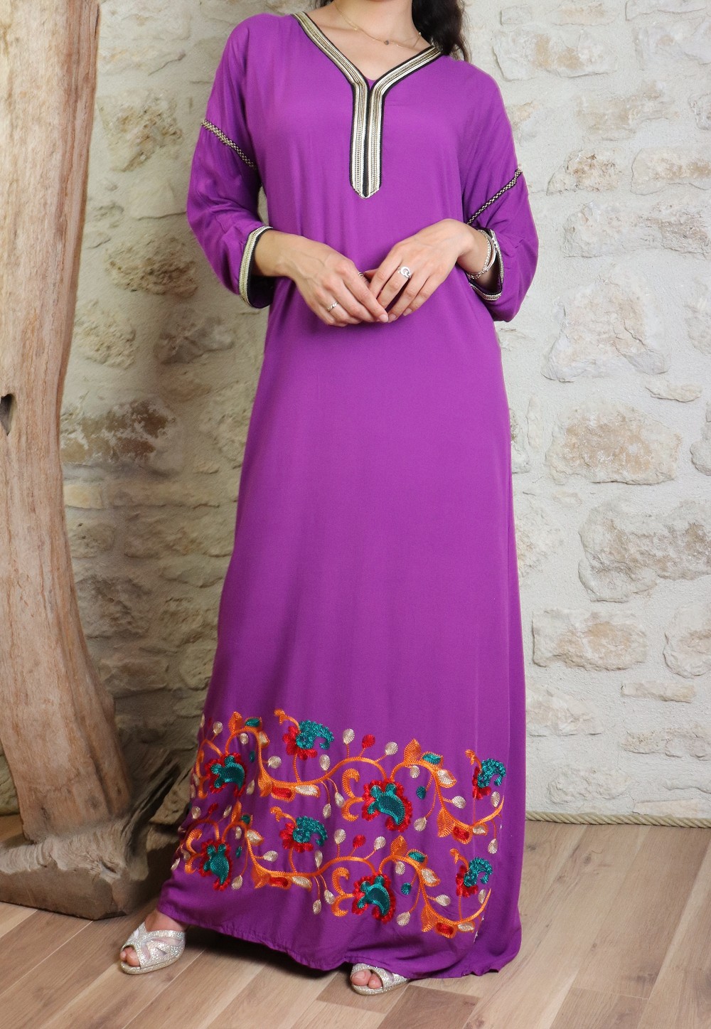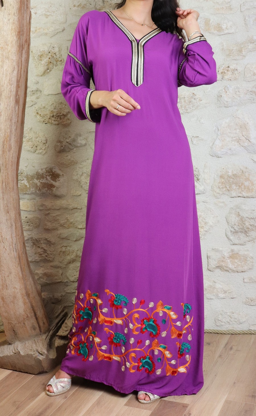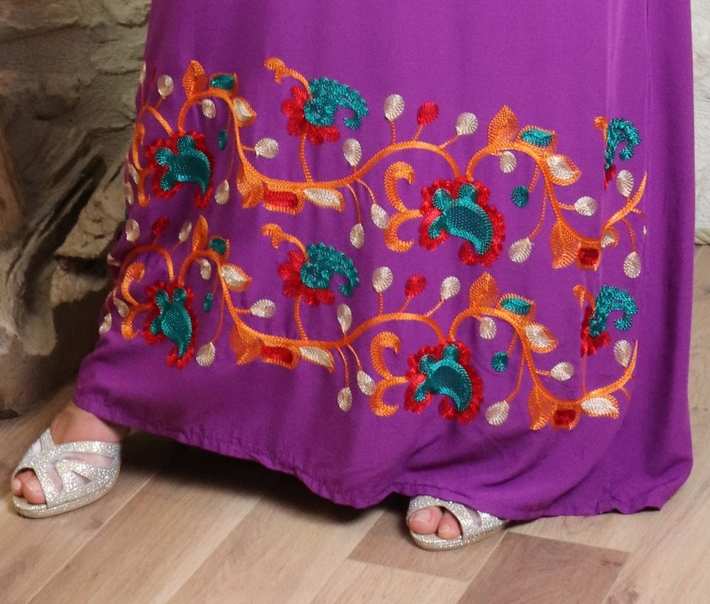 Confectionnée dans un style chic et classique, cette robe longue en saura vous satisfaire avec ses broderies fines multi-couleur au niveau du bas de la robe.