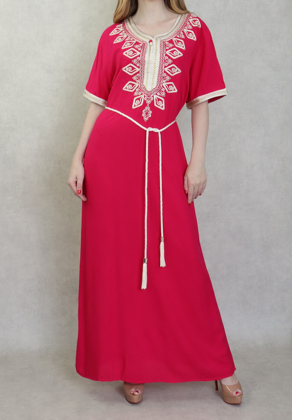 Cette robe orientale à manches courtes, encolure en V, tissu doux type coton et léger vous donnera une allure incroyable.