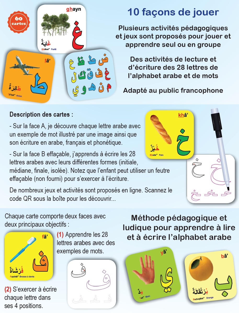 J'apprends à lire et à écrire l’arabe - Jeux et activités (60 cartes) - أَتَعَلَّمُ قِرَاءَةَ وَكِتَابَةَ اللُّغَةِ الْعَرَبِيَّةِ - أَلْعَابٌ وَأَنْشِطَةٌ