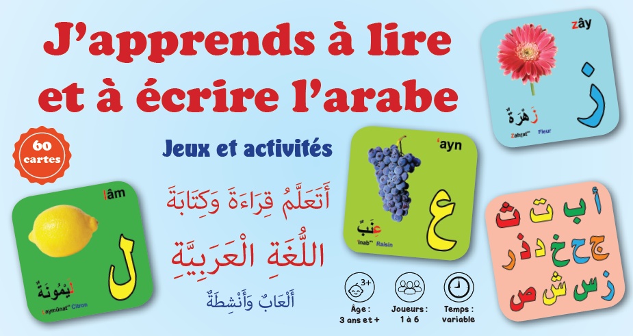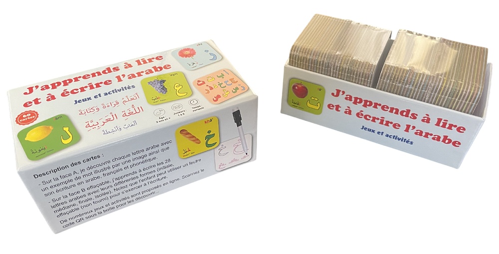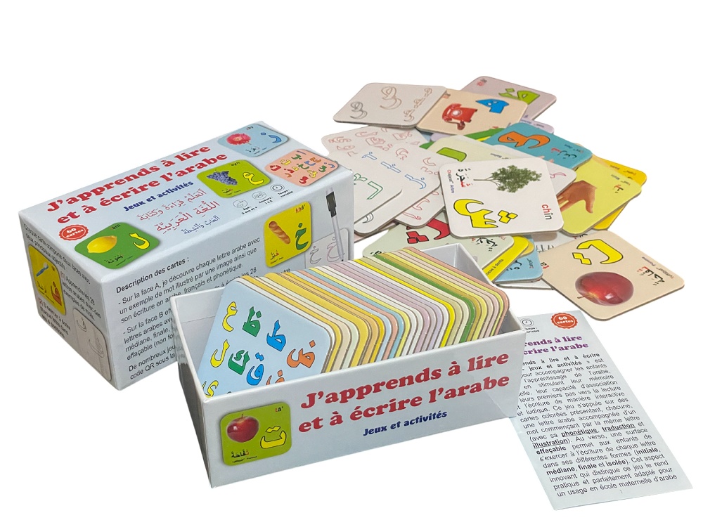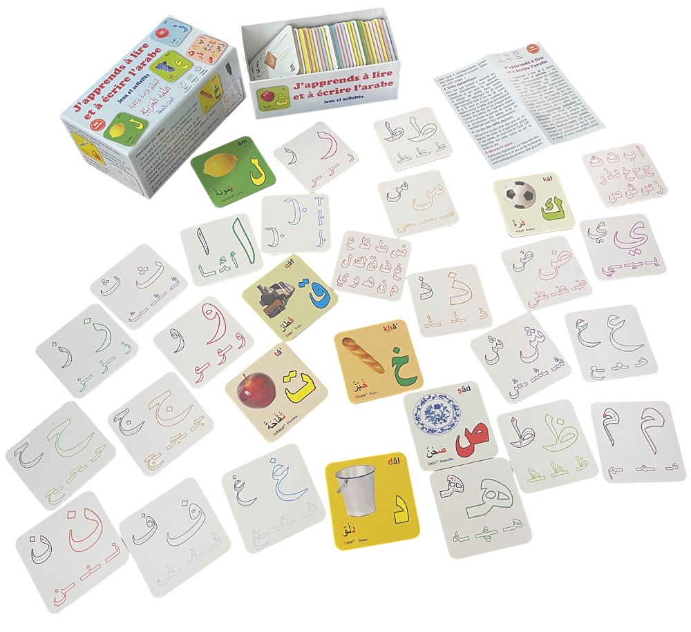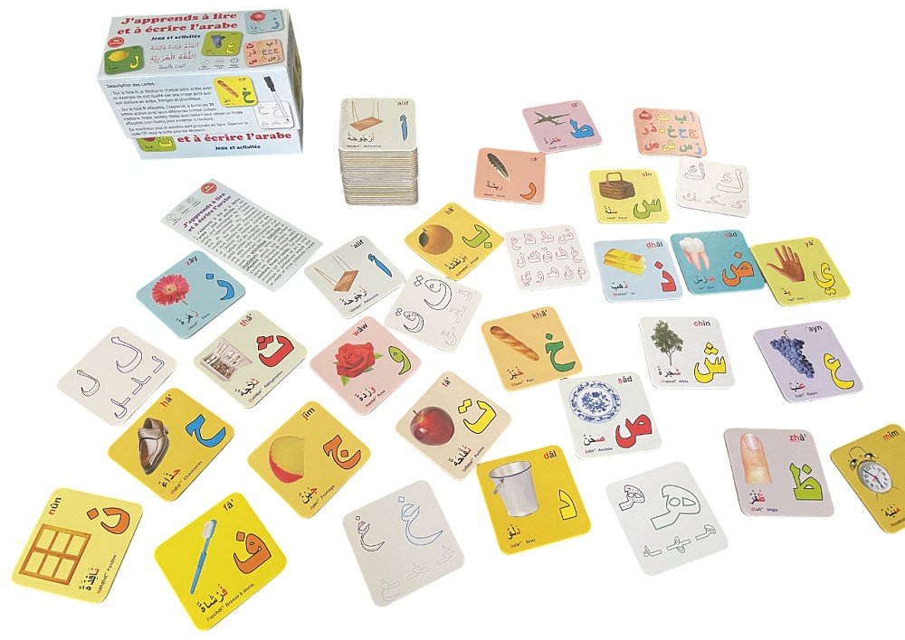 J'apprends à lire et à écrire l’arabe - Jeux et activités (60 cartes) - أَتَعَلَّمُ قِرَاءَةَ وَكِتَابَةَ اللُّغَةِ الْعَرَبِيَّةِ - أَلْعَابٌ وَأَنْشِطَةٌ - REF. 41100 (12.90 €)