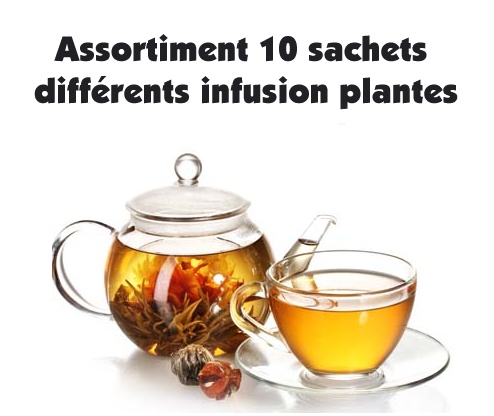 Assortiment 10 sachets differents d'infusion de plantes tisanes et thes
