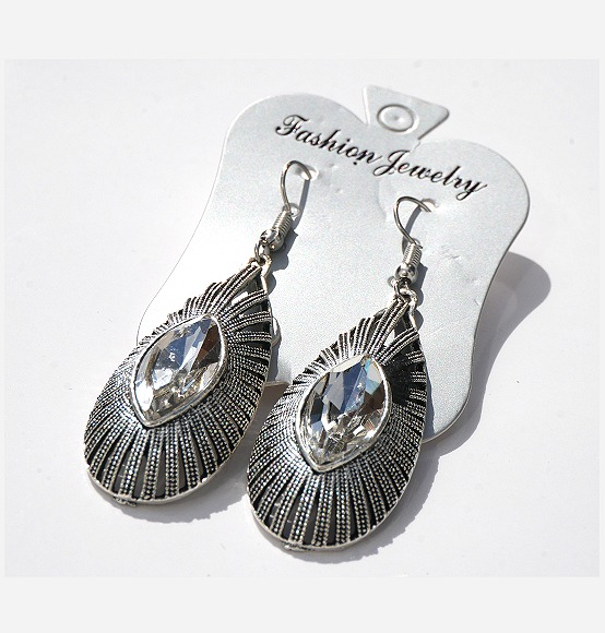 Boucles d'oreilles pendantes, style berbère, fabriquées en métal argenté - composition argent - délicatement ciselé, serties de pierres blanc...