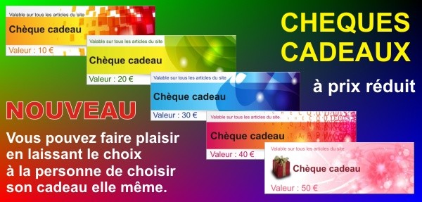 Pour offrir à vos proches un chèque cadeau, c'est très simple : ajoutez le chèque au panier et vous recevrez votre chèque cadeau par e-mail vous pourrez alors l'imprimer ou le transférer par e-mail à la bonne personne. Le chèque cadeau est valable sur le site internet sans limite de temps.