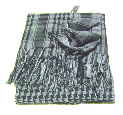 Foulard palestinien avec des carreaux noirs gris (100 % viscose) et des nattes.