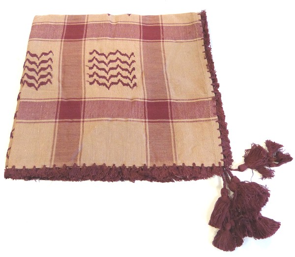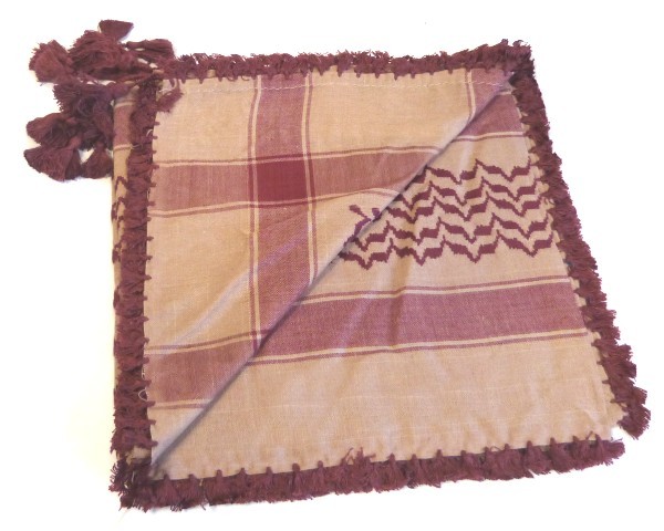 Grand foulard palestinien (Keffieh - Shemagh) de couleur bordeaux et beige - REF. 16935 (10.00 €)