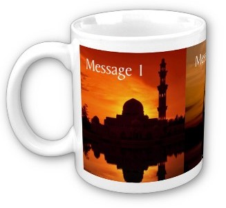 Mug personnalisable avec des photos de mosquées au coucher du soleil. Passe au four micro-ondes et au lave-vaisselle sans problèmes.