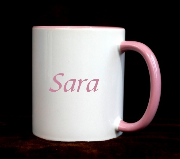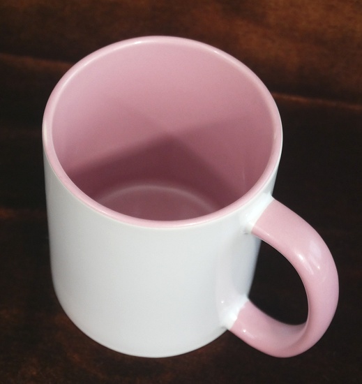 Très jolie tasse blanche avec intérieur et anse de couleur rose. Le mug est l'objet idéal à personnaliser.