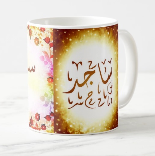 Voir l'ensemble des mugs dédiés au prénoms calligraphiés en arabe (Mugs prénoms arabes et musulmans féminins - Mugs prénoms français)