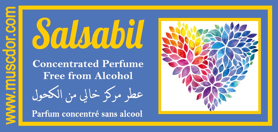 Parfum concentré sans alcool Musc d'Or "Salsabil" (20 ml). Pour femmes. Dans la tradition musulmane, "Salsabil" est le nom d'une source des rivières du Paradis.