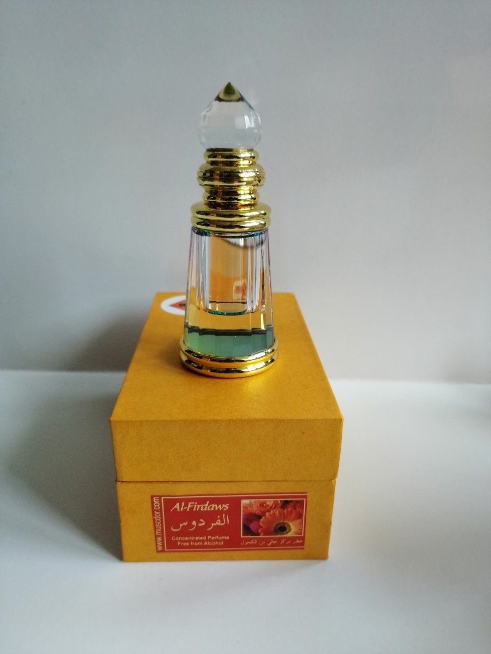 Notes du parfum Al-Firdaws : bergamote, mandarine, thé vert, cassis, de galbanum, musc, santal, petit grain.