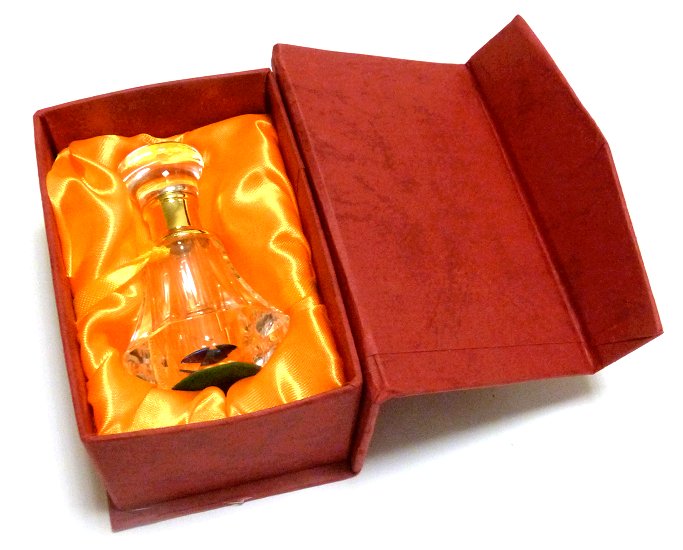 Très grande bouteille en cristal de 25 cm de haut avec coffret en bois de luxe (135 ml de musc concentré de votre choix) - REF. 21206 (149.00 €)