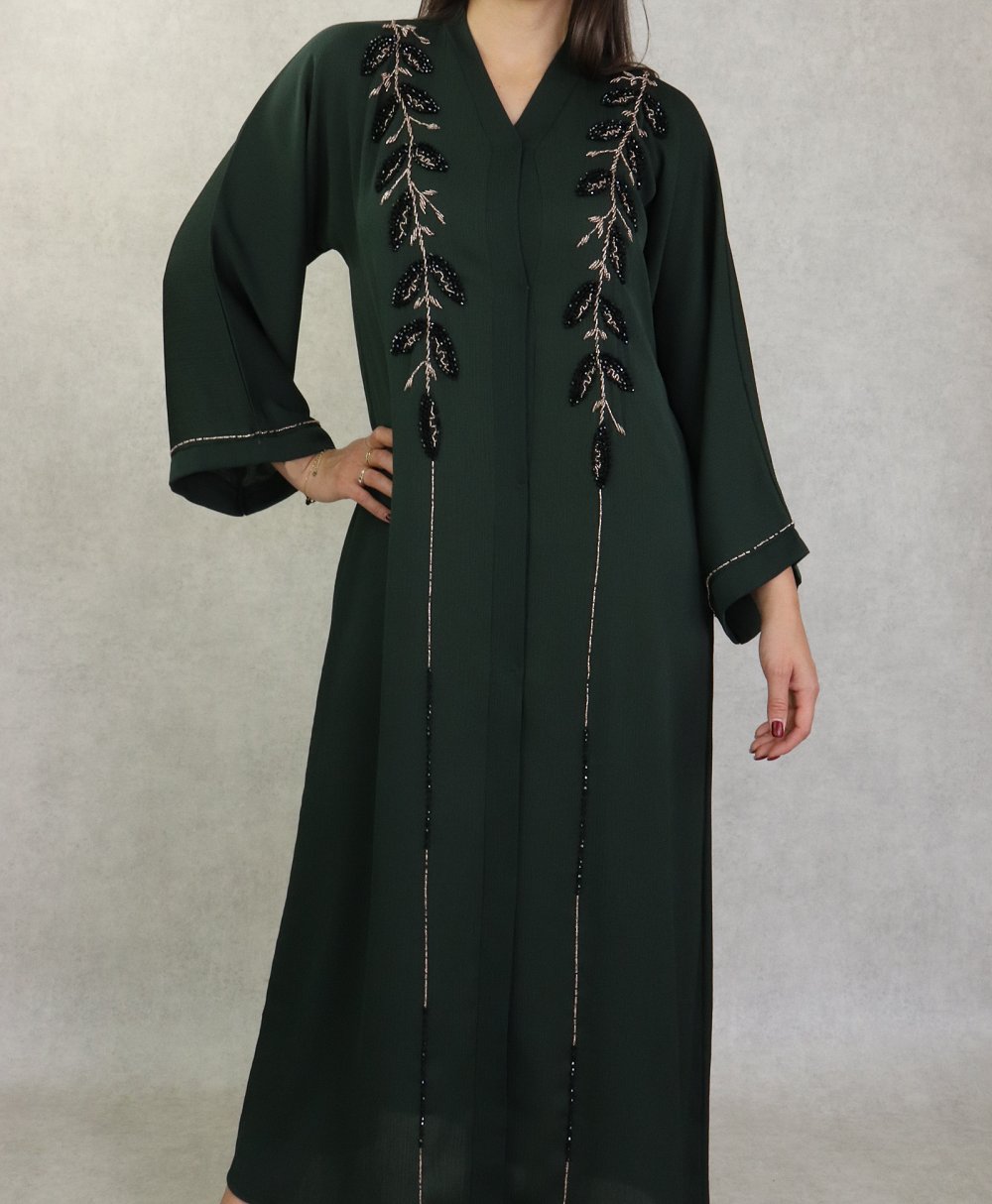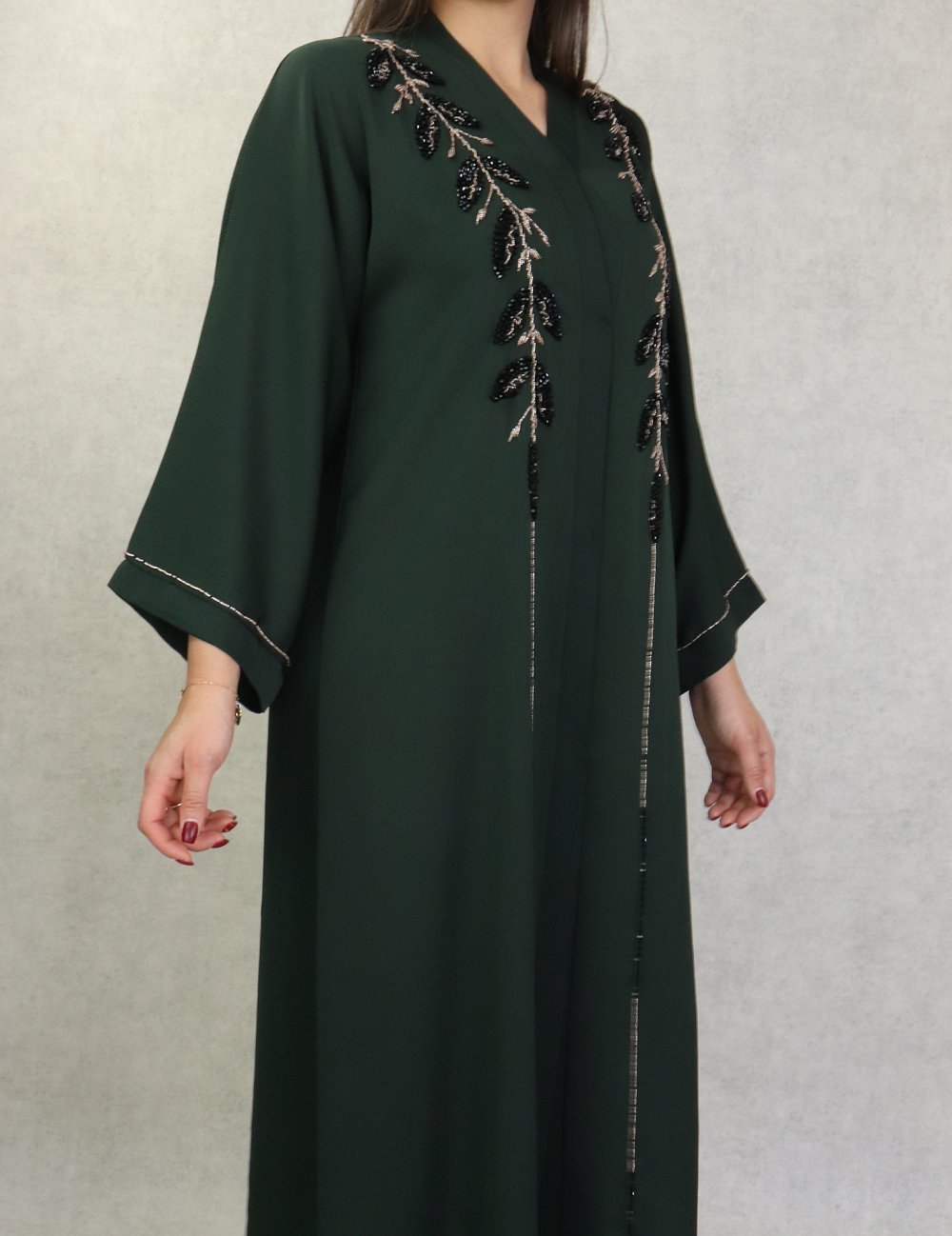 Robe Abaya Dubaï de qualité brodée à la main ouverte à l'avant - Couleur vert sapin foncé Vetement & Accessoire