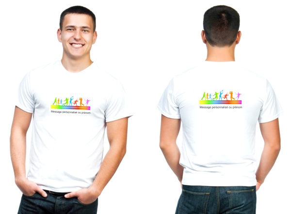 Vous pouvez choisir l'impression au niveau du dos ou de la poitrine (devant). Vous pouvez également si vous le désirez ajouter un message ou un prénom (optionnel) qui sera imprimé sous l'illustration.