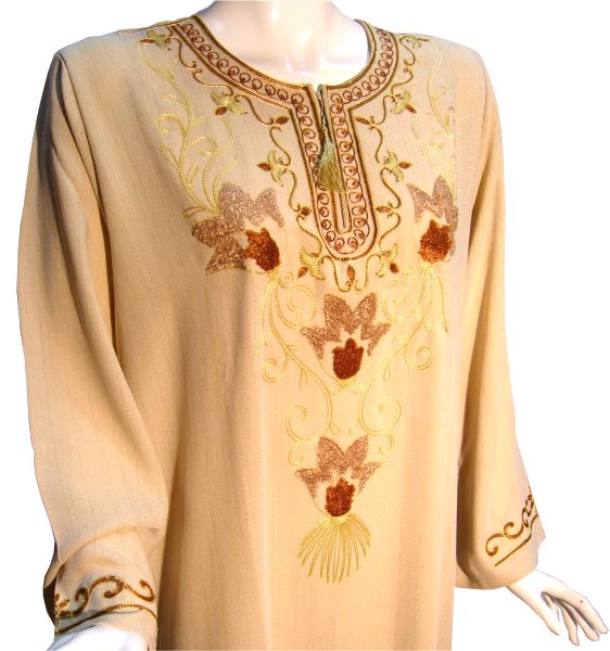 Robe longue style oriental arabe tunisien brodée manches courtes pour femme (Plusieurs couleurs disponibles) - REF. 37036 (19.90 €)